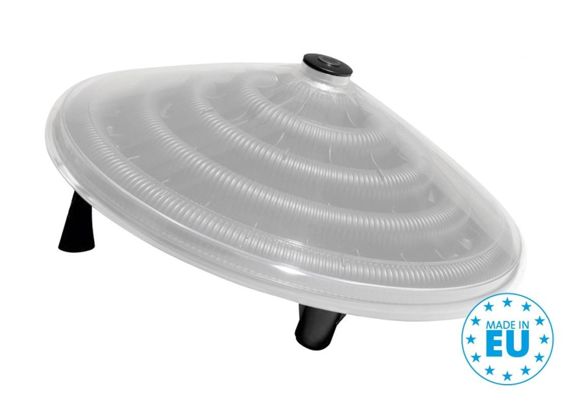 Solární ohřev Pyramida Sun je určený pro nadzemní i zapuštěné bazény do objemu 6 m3. Díky kompaktnímu tvaru a pyramidově uspořádanému vinutí vody v ohřevu je ideální pro menší zahrady, kde není prostor na ploché solární ohřevy.