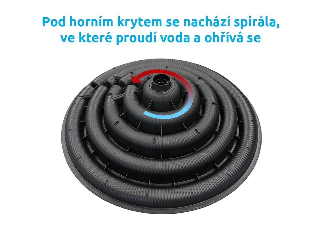 Součástí balení je solární ohřev, vrchní plastový kryt a trny na napojení 32 a 38 mm hadic.