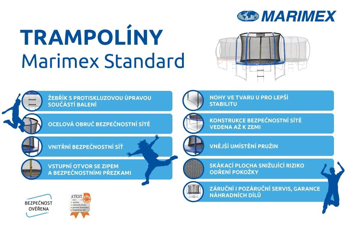 Trampolína Marimex Standard je skvělým doplňkem každé zahrady. Děti skákání na trampolíně milují a pVíce