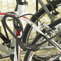 Ocelové pletené lanko o průměru 10 mm a délce 1 800 mm má vinylový potah, který zabraňuje poškrábání. Obsahuje integrovaný zámek na klíč, součástí balení jsou 4ks klíčů. Součástí balení je i držák pro praktické skladování.