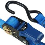 Upínací popruh s ráčnou a háčky na konci. Délka 5 000 mm a šířka 25 mm. PVC rukojeť pro vynikající uchopení a pohodlné použití. Maximální nosnost 300 kg. Barva: modrá Cena za kus