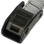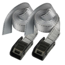Set 2ks upínacích popruhů s vyztuženou přezkou. Délka 2 500 mm a šířka 25 mm. Vyztužená přezka pro vyšší nosnost. Maximální nosnost 150 kg. Barva: šedá Cena za set