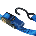 Set 4ks upínacích popruhů s ráčnou zakončených háčky. Délka 5 000 mm a šířka 25 mm. Vysokopevnostní háčky s pojistnou sponou. Páka ráčny z odolného PVC plastu. Maximální nosnost 300 kg. Barva: modrá Cena za set