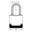 - Visací zámek o šířce 48 mm s tělem z laminované oceli s povrchovou úpravou odolnou proti povětrnostním vlivům.