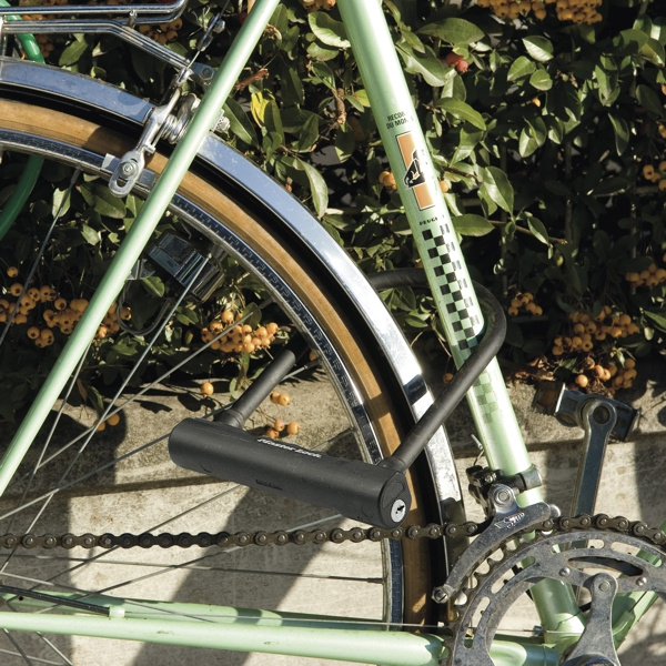 Tělo zámku je vyrobené z tvrzené oceli odolné proti povětrnostním vlivům. Jeho třmen je z kalené oceli s osmiúhelníkovým profilem o průměru 12 mm. Vinylový potah třmenu zabraňuje poškrábání laku. Zámek obsahuje diskovou cylindrickou vložku odolnou proti vyhmatání a dvojitou západku odolnou proti vypáčení. Navíc krytka klíčové dírky zabraňuje vniknutí nečistot. Součástí balení je držák pro praktické skladování a 2 ks klíčů.