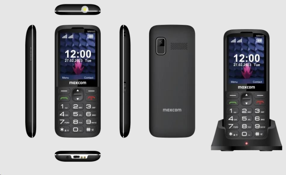 Typ:Klasické, Pro seniory; Datové služby:LTE (4G); Úhlopříčka displeje ("):2.8; Maximální velikost paměťové karty (GB):32; Slot na paměťovou kartu; Rozlišení zadního fotoaparátu:0.3; Počet objektivů zadního fotoaparátu:1; Kapacita baterie (mAh):1700; Barva:Černá; Hloubka (mm):14; Hmotnost (g):110; Šířka (mm):58; Výška (mm):143; Konfigurace karet:Dual SIM.Více