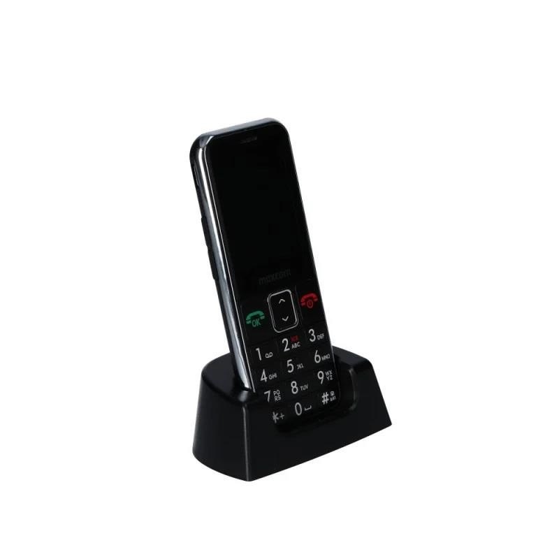 Typ:Klasické, Pro seniory; Datové služby:GPRS (2G); Úhlopříčka displeje ("):2.2; Rozlišení zadního fotoaparátu:2; Počet objektivů zadního fotoaparátu:1; Kapacita baterie (mAh):800; Barva:Černá; Hloubka (mm):11.9; Šířka (mm):49.5; Výška (mm):124; Konfigurace karet:Single SIM; Funkce:FM Rádio, SOS tlačítko, Nabíjecí stojánek, Podpora MMS.Více