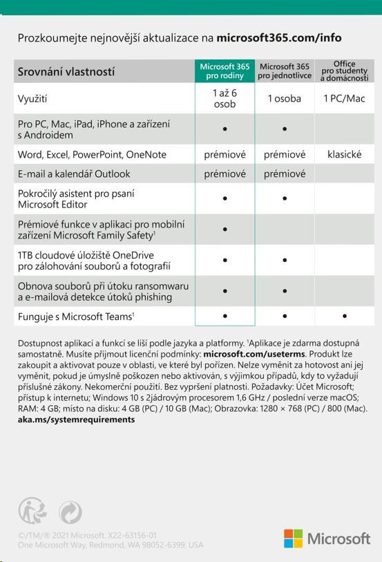 Popis Microsoft 365 Pro rodiny CZ (1rok)