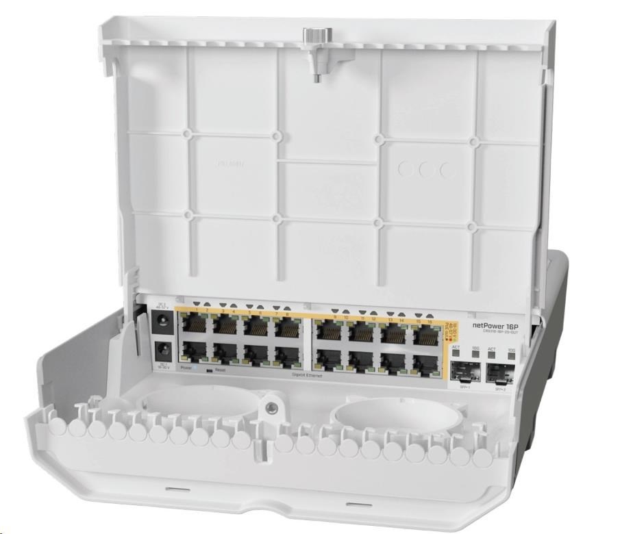 Powering a bunch of access points or IP cameras and a few uplinks on a tower has never been easier. netPower 16P has 16 Gigabit Ethernet ports with PoE-out and two SFP+ ports for 10G fiber uplinks. Technické specifikace:| Fyzické charakteristiky | |