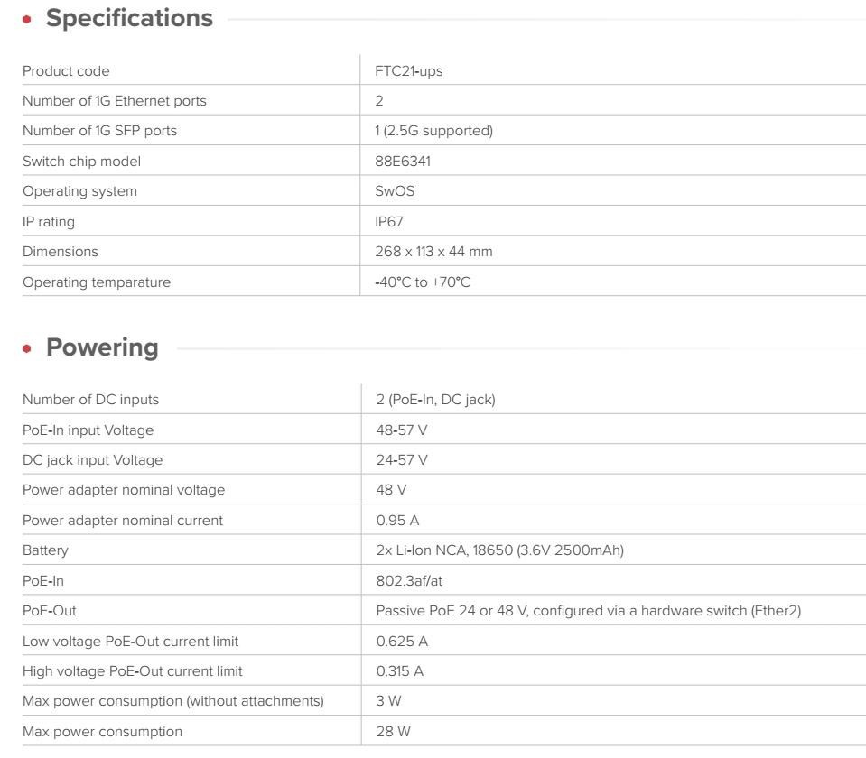 Popis MikroTik FTC21-ups Venkovní inteligentní média konvertor Optika/Metalika s UPS funkcí