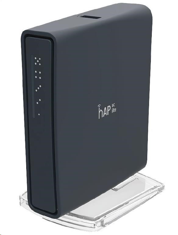 hAP ac lite je nový kompaktní router podporující standard 802.11ac. Je integrována jak 2.4GHz tak 5GHz Wi-Fi. (2.4GHz využívá 802.11b/g/b, dual chain 1.5dBi anténa, 300Mbps / 5GHz jede na 802.11ac a nechybí ani zpětná kompatibilita s 802.11a/n., single chain - 2dBi anténa, 433Mbps). Tato duální wifi tak dosahuje celkových přenosových rychlostí až 733Mbps. Procesor je taktován na 650MHz a sekunduje mu 64MB RAM operační paměti typu DDR. K dispozici je celkem pět ethernetových portů 100Mbps s podporou PoE in(port1) taktéž out (port5).