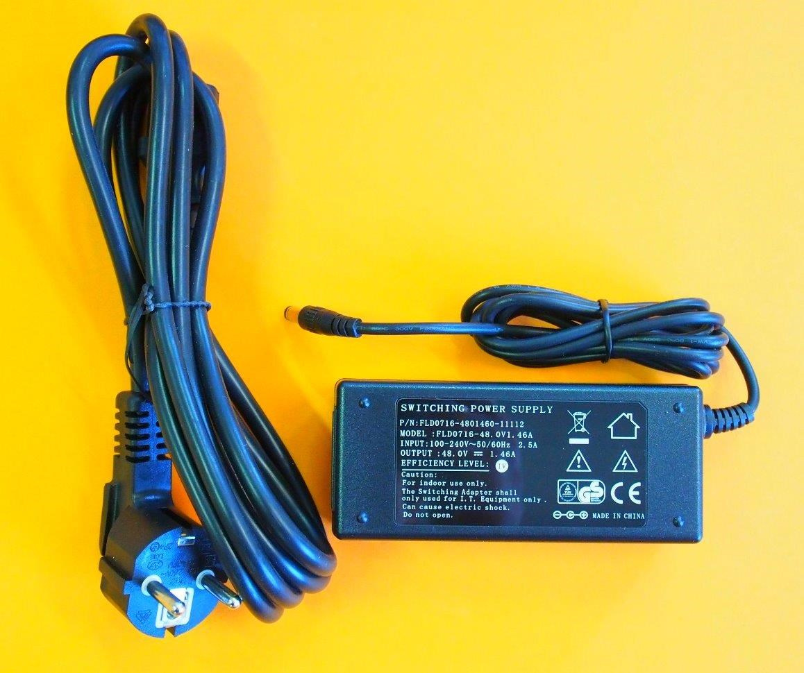 Popis MikroTik napájecí adaptér 48POW, 48V 1.46A 70W, napájecí kabel