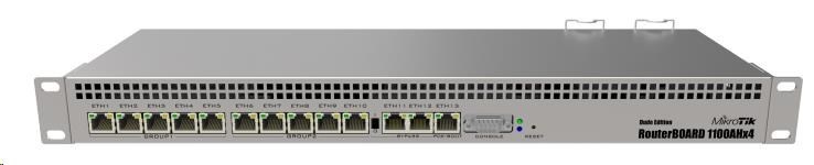 Balení obsahuje: RB1100AHx4 v hliníkovém krytu do 1U, integrovaný napájecí zdroj, napájecí kabel, vše je sestaveno a připraveno k okamžitému nasazení.