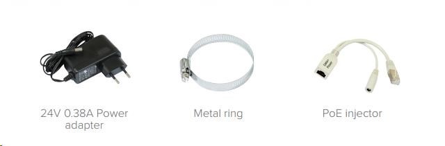 Balení obsahuje: SXTsq 5 ac, PoE injektor, napájecí zdroj, montážní sada na stožár
