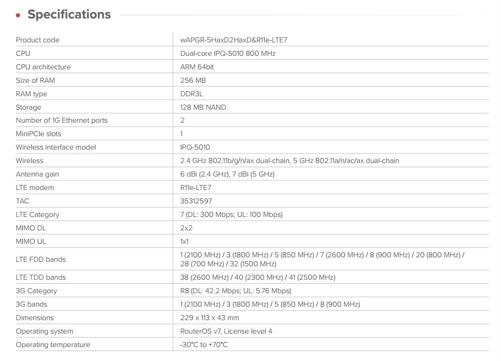 Popis MikroTik wAPGR-5HaxD2HaxD&R11e-LTE7 Wi-Fi 6 Access Point wAP ax LTE7 kit
