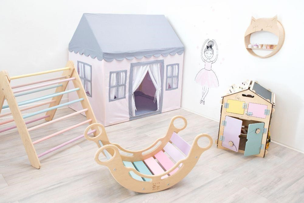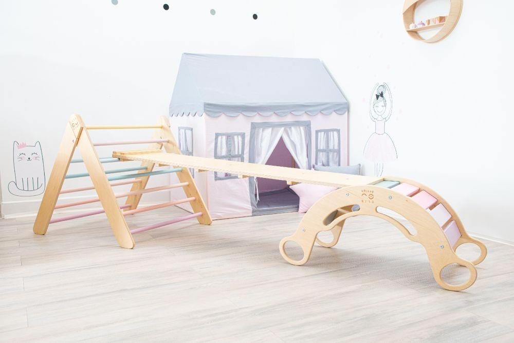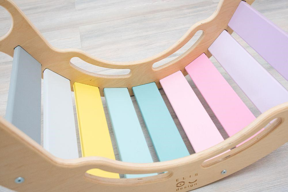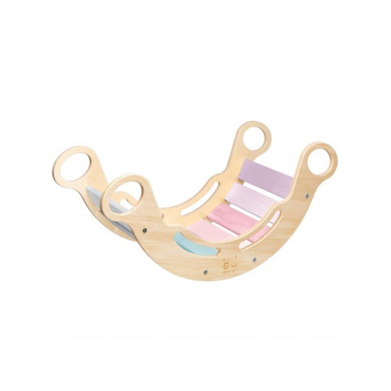 Popis Montessori duhová houpačka 5in1 natur, lakované okraje, duhové desky
