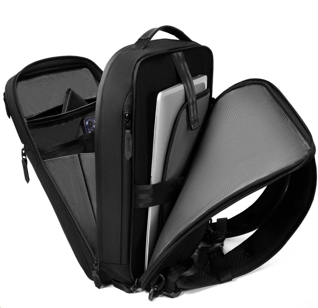 Hlavní kapsa batohu je přehledně členěna do vnitřních kapes a přihrádek. Dále je vám k dispozici velká zadní kapsa, dvě přední kapsy, skrytá kapsa a kapsa na láhev.