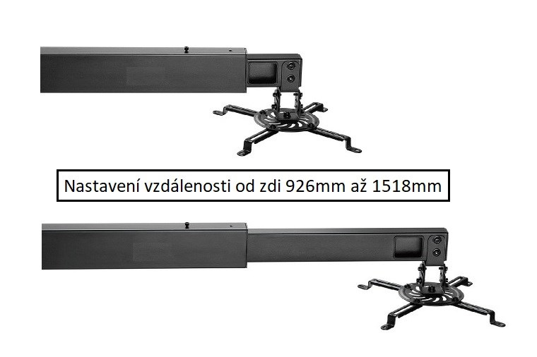 Nástěnný držák na projektor, nastavení vzdálenosti od zdi 926-1518mm, otočný +/-180°, sklopný +/-15°, skryté vedení kabeláže, nosnost 15kg.Více
