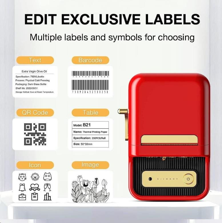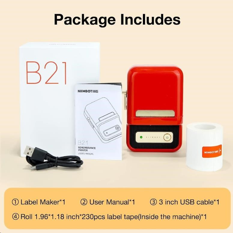 Popis Niimbot Tiskárna štítků B21S Smart, červená + role štítků 210ks