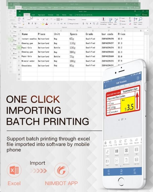 Model Niimbot B21S umožňuje také tisk přímo z PC. Do aplikace Niimbot si také můžete třeba naimportovat připravená data z Excelu.