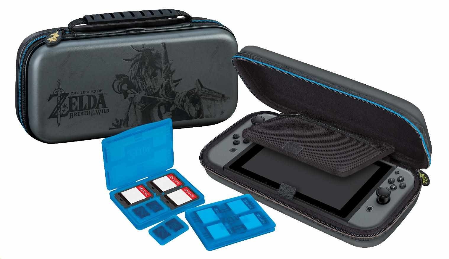 Balení rovněž obsahuje dvě plastová pouzdra na herní karty s logem Legend of Zelda™: Breath of the Wild, z nichž do každého se vejdou čtyři herní karty, a také dvě plastová pouzdra na microSD karty s logem Legend of Zelda™: Breath of the Wild, přičemž do každého z těchto menších pouzder se vejdou dvě microSD karty a každé z těchto pouzder se vejde do libovolné pozice ve větším pouzdru na herní karty.