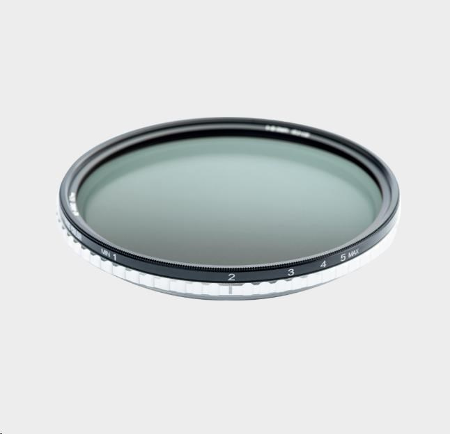 NiSi ND-VARIO 1–5 Stops True Color je variabilní neutrální šedý filtr, který umožňuje snížení expozice v rozsahu 1 až 5 EV. Hustota (ND faktor) se plynule nastavuje otáčením předního prstence filtru, a to s využitím nebo bez použití přiložené stříbrné páčky. Filtr má pevné dorazy na koncových pozicích, díky nimž vždy víte, kde se při práci nacházíte.