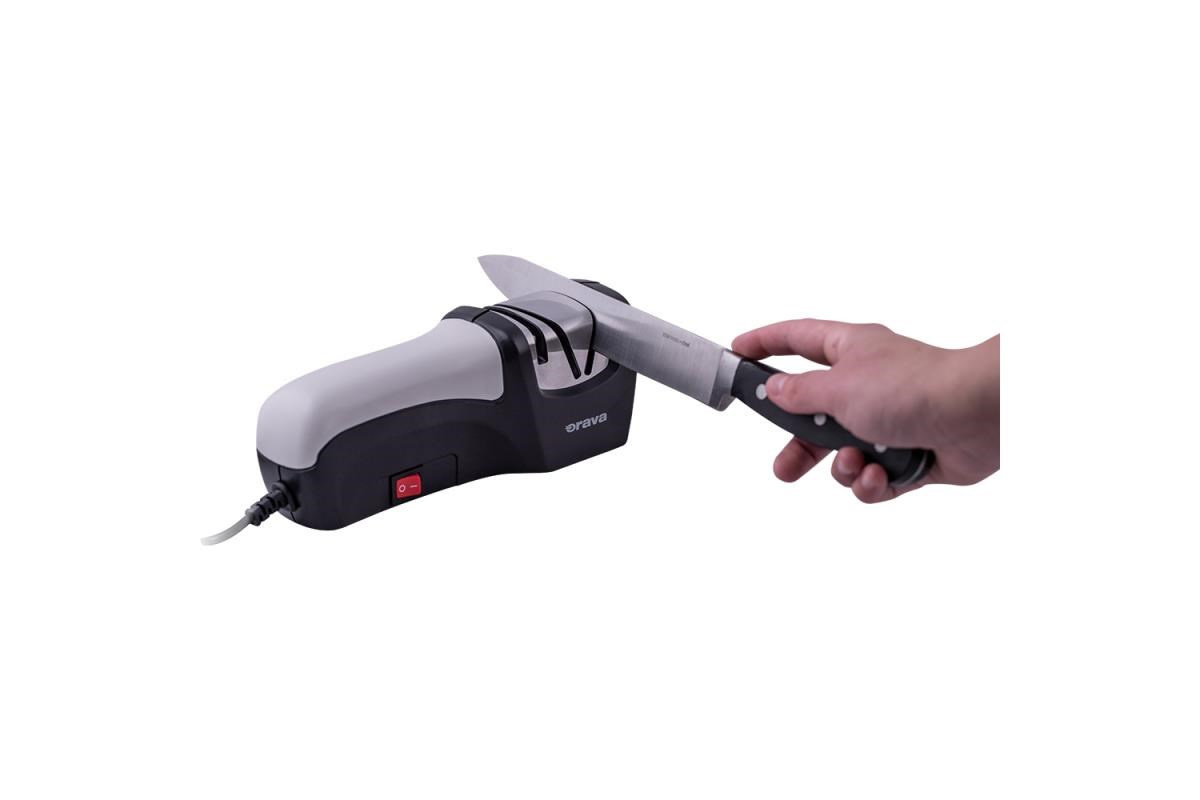 Jen nože ostré jako břitva dokážou precizně porcovat suroviny při vaření. Každý nůž u vás doma pečlivě, rychle a bez sebemenší námahy ochotně nabrousí elektrická bruska nožů Orava BN-30. Stačí ji zapojit do elektrické sítě, zapnout a do vodící drážky vložit tupý nůž. Dvoustupňový ostřící systém se postará o dokonale ostrý výsledek. Hrubé broušení na úvod pomocí safírových brusných kotoučů zakončete jemným dobrušováním manuálně pomocí keramických brusných tyčí integrovaných v drážce úplně vlevo. Bruska má dostatečně velkou rukojeť pro bezpečné uchopení a spolehlivě poslouží pravákům i levákům.
