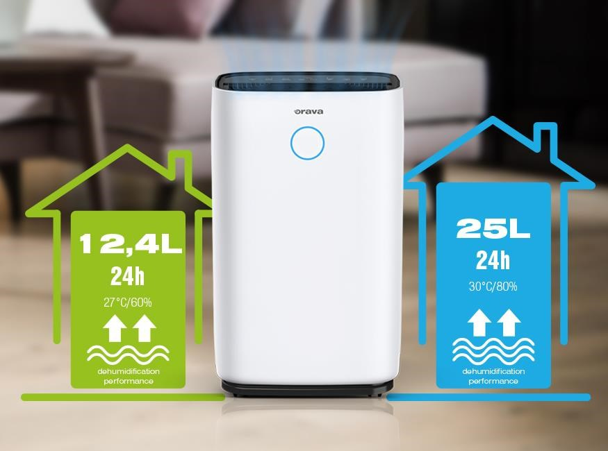 Se zvyšující se vlhkostí se v interiéru množí plísně, houby a bakterie, které poškozují naše zdraví i vzhled domu. Účinný odvlhčovač vzduchu Orava Dehum-1 odsaje ze vzduchu přebytečnou vlhkost a částečně vyčistí vzduch v místnosti od prachu, kouře, bakterií a pylu. Spolehlivě se postará o optimální vlhkost v bytě, domě i na chatě.