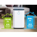 Vysokého výkonu dosahuje při pokojové teplotě 30 °C a 80% relativní vlhkosti, kdy ze vzduchu odsaje až 25 l za 24 hodin, při pokojové teplotě 27 °C a 60% relativní vlhkosti odsaje 12,4 l za 24 hodin. Objem zachycené nádoby na vodu je 4 l. Po naplnění této nádržky se odvlhčovač automaticky vypne. Nepřetržitý provoz je umožněn stálým odtokem vody pomocí hadice, která je součástí balení. Samozřejmostí je 12hodinový časovač, kde si můžete nastavit dobu provozu podle svých potřeb.