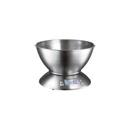 Nerezová digitální kuchyňská váha, Miska o objemu 2,1 l, Velký LCD displej, Váživost do 5 000 g (přesnost 1 g), Vážení hmotnosti (kg, g / lb, oz), Funkce dovažování / nulování TARE, Zobrazení okolní teploty v ° C / ° F, Funkce časovače (minutkovač).Více
