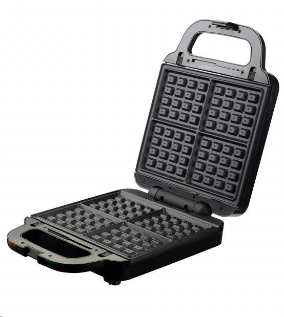 Multifunkční toustovač 3 v 1, 3 výměnné desky s kvalitním nepřilnavým povrchem, Sendvičovač pro 4 sendviče, vafle a grilování, Funkce otevřeného grilu, Tepelně izolované držadlo, Jednoduché čištění, plotny omyvatelné i v myčce nádobí, Světelná signalizace (napájení, ohřev) Tepelná pojistka, Napájení: 220 - 240V~ 50Hz, 1 400 W.