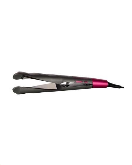Žehlička vlasů 2 v 1 - na žehlení vlasů i na vytvoření loken Speciální zatočené keramické destičky žehličky pro jednoduché vyrovnání vlasů / zvlnění vlasů do loken Plynulé nastavení teploty od 150 do 230 ° C LED displej s ukazatelem aktuální teploty.Více