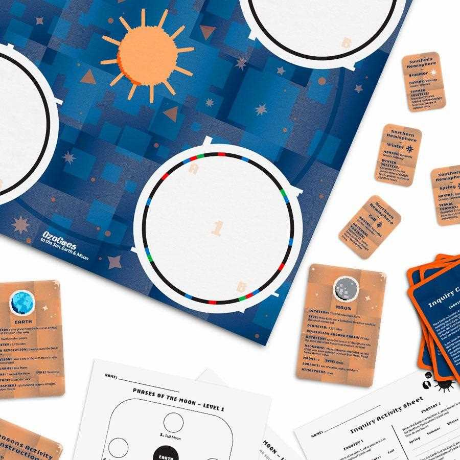 Zjistěte, jak pohyby Slunce a Měsíce ovlivňují různé jevy na Zemi, díky sadě OzoGoes to the Sun, Earth & Moon.