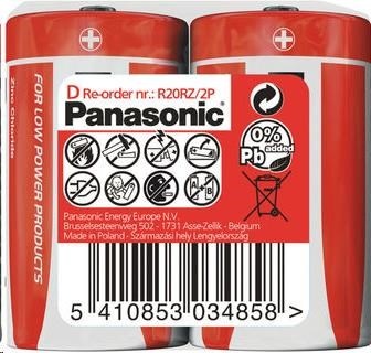 Popis PANASONIC Zinkouhlíkové baterie Red Zinc R20RZ/2P D 1,5V (shrink 2ks)