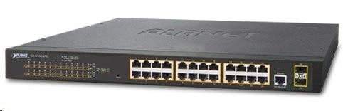 Popis Planet GS-4210-24P2S PoE+ switch 24x 10/100/1000Base-T, 802.3at do 300W, VLAN, SNMP/WEB