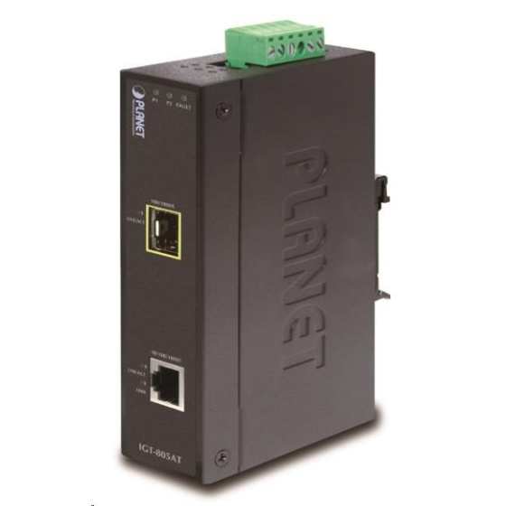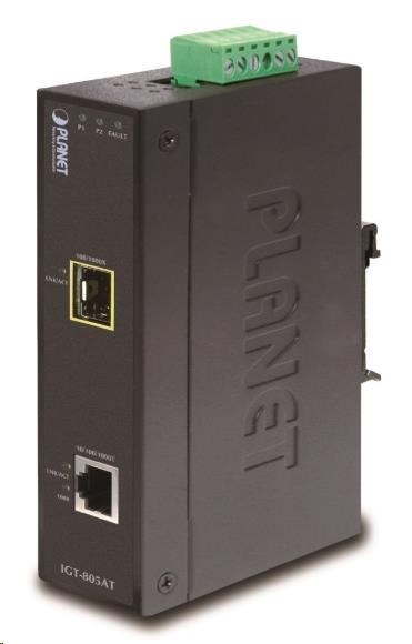 Popis Planet IGT-805AT, konvertor 10/100/1000T RJ-45 na 1x 100/1000X SFP, -40 +75°C