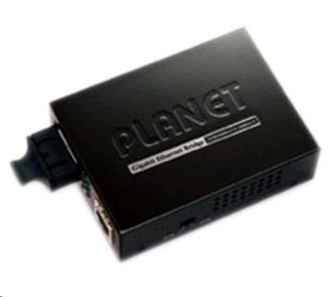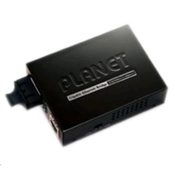 Konvertor pro přechod mezi multi-módovým a metalickým spojem pro Gigabitový Ethernet. Spojení do 550m na straně multi-módového vlákna 50/125 a do 100m na straně metalického spoje.