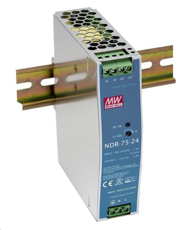 Popis Planet PWR-75-48, Mean Well průmyslový zdroj na DIN lištu, nastavitelný 48-56V DC, 75W