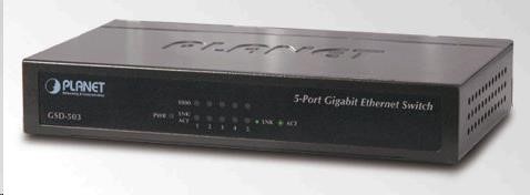 5portový Gigabitový desktopový přepínač. Autodetekce rychlosti a typu kabelu.