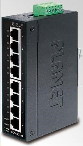 Popis Planet switch IGS-801M, 8X 1000BASE-T, DIN, IP30, -10 AŽ 60°C, ESD+EFT DO 6KV, WEB/SNMP, VLAN, STP
