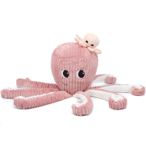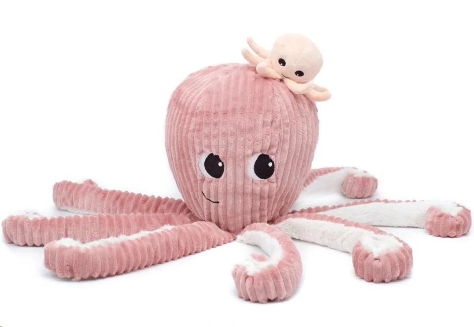 Plyšová hračka 2v1, v podobě roztomilé chobotnice s miminkem, okouzlí malé i velké děti. Úžasně heboučký plyšák je krásným dárkem k narození miminka i k jakékoliv jiné příležitosti. Plyšová chobotnice se svými 8 chapadly je připravena si s dětmi hrát, mazlit se a dělat jim společnost doma i na cestách. Pod hlavičkou chobotnice se ukrývá překvapení, malá chobotnička. Chobotnici s miminkem nabízíme ve více barevných variantách..