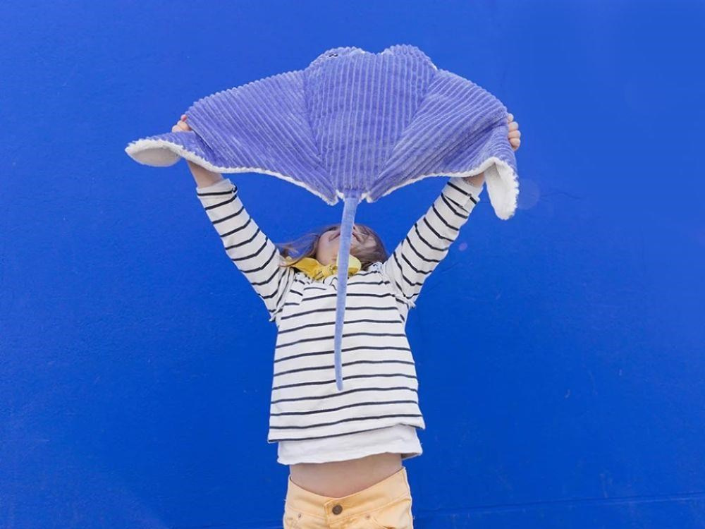 Plyšová manta (rejnok) - máma s miminkem, fialová