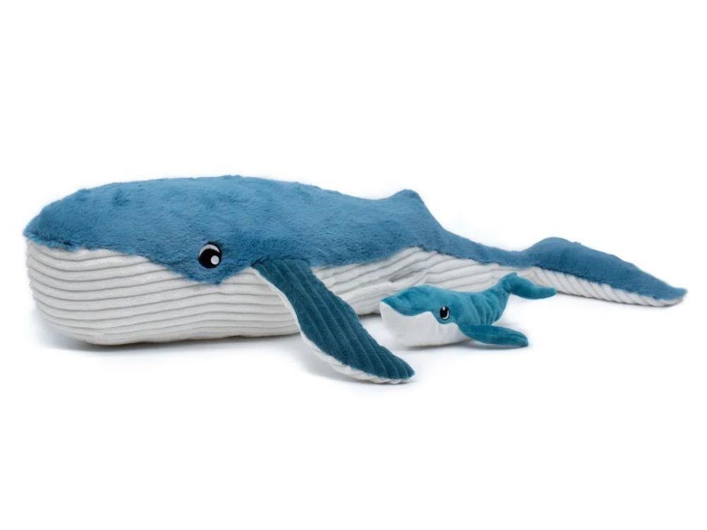 Velký plyšák 2v1, velrybí maminka s miminkem, je originální plyšovou hračkou, která potěší holčičky i kluky. Roztomilý a úžasně heboučký plyšák je vhodný pro děti již od narození, ale jistě si jej zamilují i děti větší. S velkým plyšákem mohou děti spát, hrát si s ním, mazlit se a použít jej jako neobyčejně příjemný a měkký polštář. Plyšovou velrybí mámu s miminkem nabízíme ve více barevných variantách..