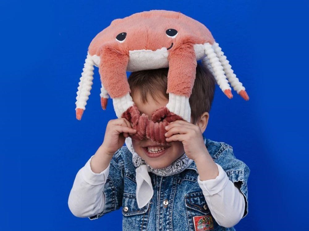Popis Plyšový krab - máma s miminkem, hnědooranžová