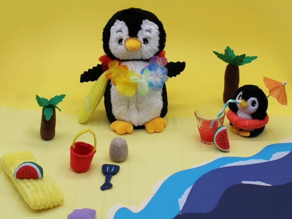 Popis Plyšový tučňák - máma s miminkem, černá