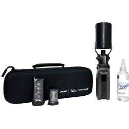Kromě zařízení SmokeGENIE obsahuje sada Hazer Kit bezdrátový dálkový ovladač, vyměnitelnou kouřovou komoru a 12" silikonovou prodlužovací trubku. Součástí balení je kapalina Cloud Formula (60 ml), která vám umožní ihned začít kouřit. Součástí balení jsou dvě li-ion baterie 18650 a baterie 23A pro napájení zařízení SmokeGENIE a dálkového ovládání.