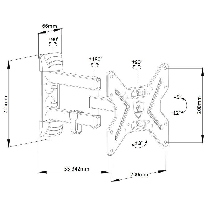 Držák na Tv 15-50", otočný +/- 90°, sklopný +5°/-12°, nastavitelná vzdálenost od zdi 55-342mm, korekce roviny +/- 3°, VESA 75x75 až 200x200, nosnost 25kg.Více