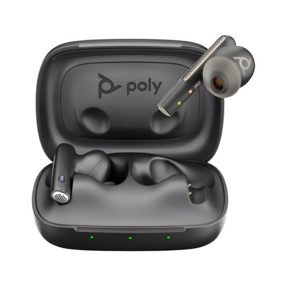 Popis Poly Voyager Free 60 MS Teams bluetooth headset, BT700 USB-C adaptér, nabíjecí pouzdro, černá