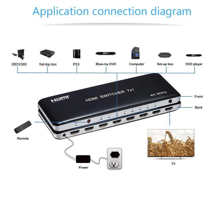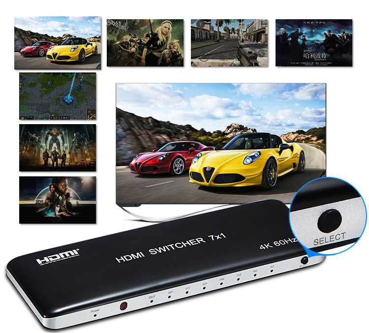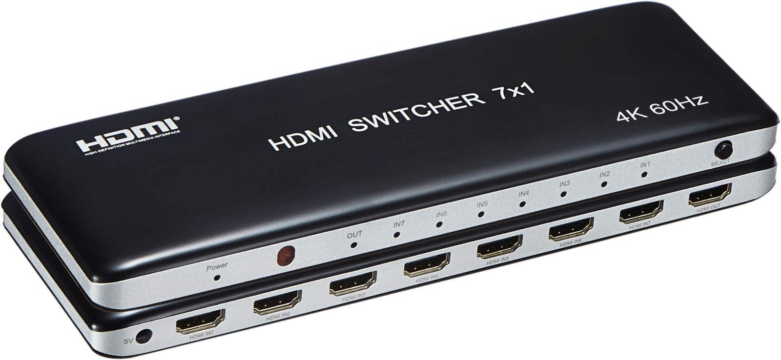 Popis PremiumCord 4K@60hz HDMI switch 7:1 plastový s dálkovým ovladačem