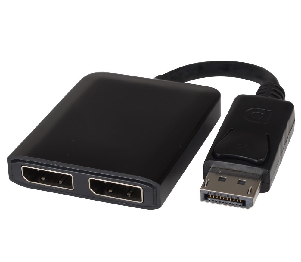Tento adaptér umožňuje propojit DisplayPort výstup se dvěmi DisplayPort monitory a na každém zobrazovat jiný obraz.Například se dá využít k vytvoření rozšířené plochy na dvou monitorech viz fotografie v příloze jako příklad použití.